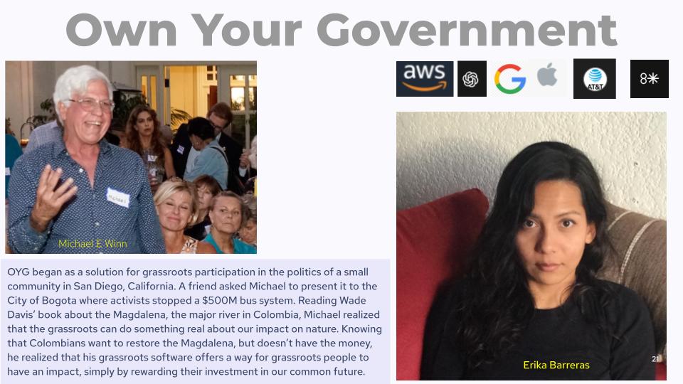 An OYG supported community is a self-identifying geographic part of a city, region, state or nation. Residents log into a community's OYG platform with a smart phone or browser. Neighborhood OYG affiliates may provide cost-free smartphones or tablets.